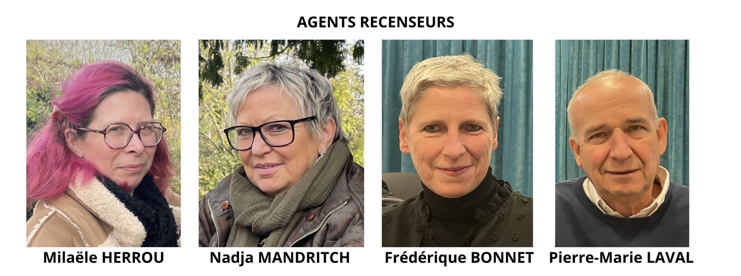 Le recensement 2026 de la population aura lieu du 15 janvier au 21 février 2026 à Talant. Si vous êtes concerné cette année, l’un des 4 agents recenseurs en photo vous en informera début janvier par un courrier déposé dans votre boîte aux lettres avant sa visite à votre domicile.
